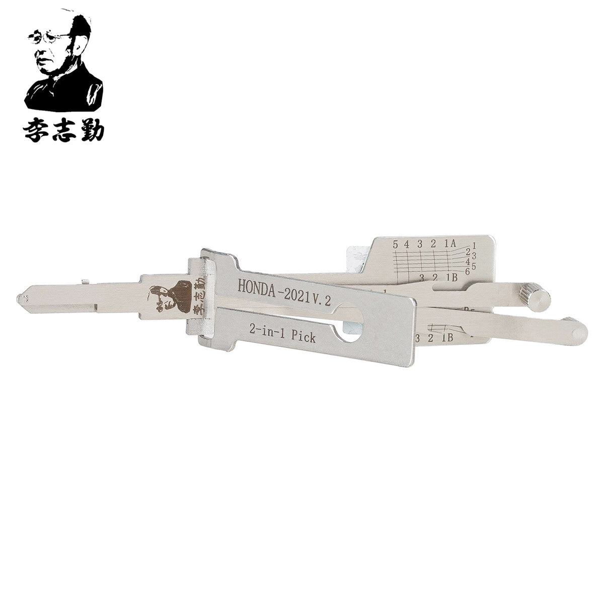 Mr. Li is designer, creator, inventor of all Lishi tools. Lishi Tools was formerly known as “Lishi” which was widely used on their products as a logo. Mr. Li had a partnership with an UK company named Tradelocks (aka. UAP Limited) to market his tools worldwide. Tradelocks is still selling Lishi tools with their trademark “Genuine Lishi”, but the two companies has no relationship at all when their contract ended in 2014. And later, Mr. Li had a new logo which uses his own face as the trademark, and brand name changed from Lishi to Li Zhi Qin (Mr. Li’s name in Chinese), which is the three Chinese characters stands for, but it’s still known as Lishi all over the world except China.